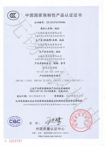 近日,星空网·网站登录官网入口-星空(中国)的移动工业冷气机、暖风机产品7个型号取得了中国质量认证中心颁发的3C强制认证证书。